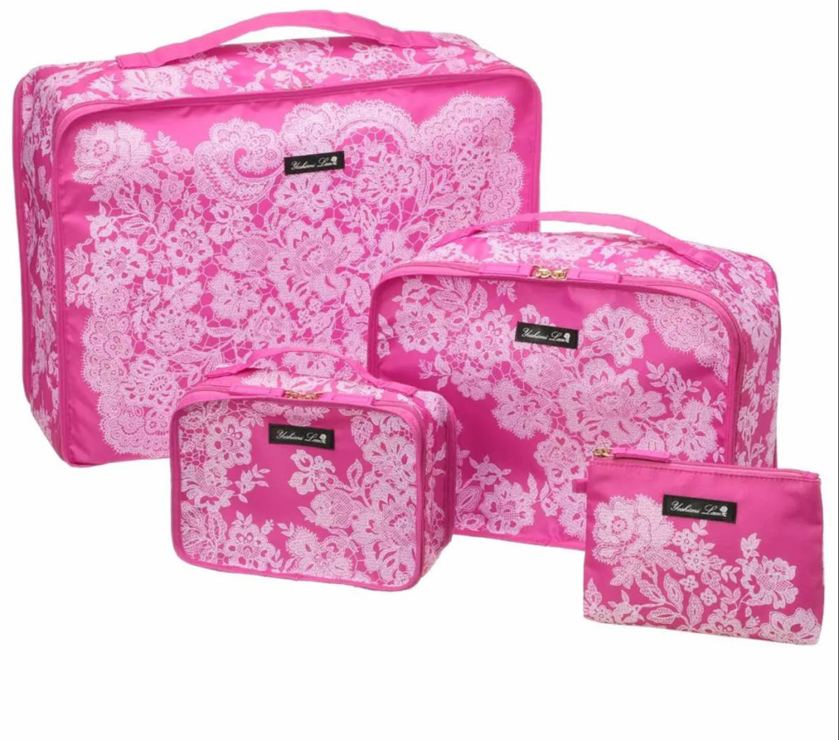 - ヨシミレース プリント 収納ポーチ4点セット ローズピンク ブルーミング中西②