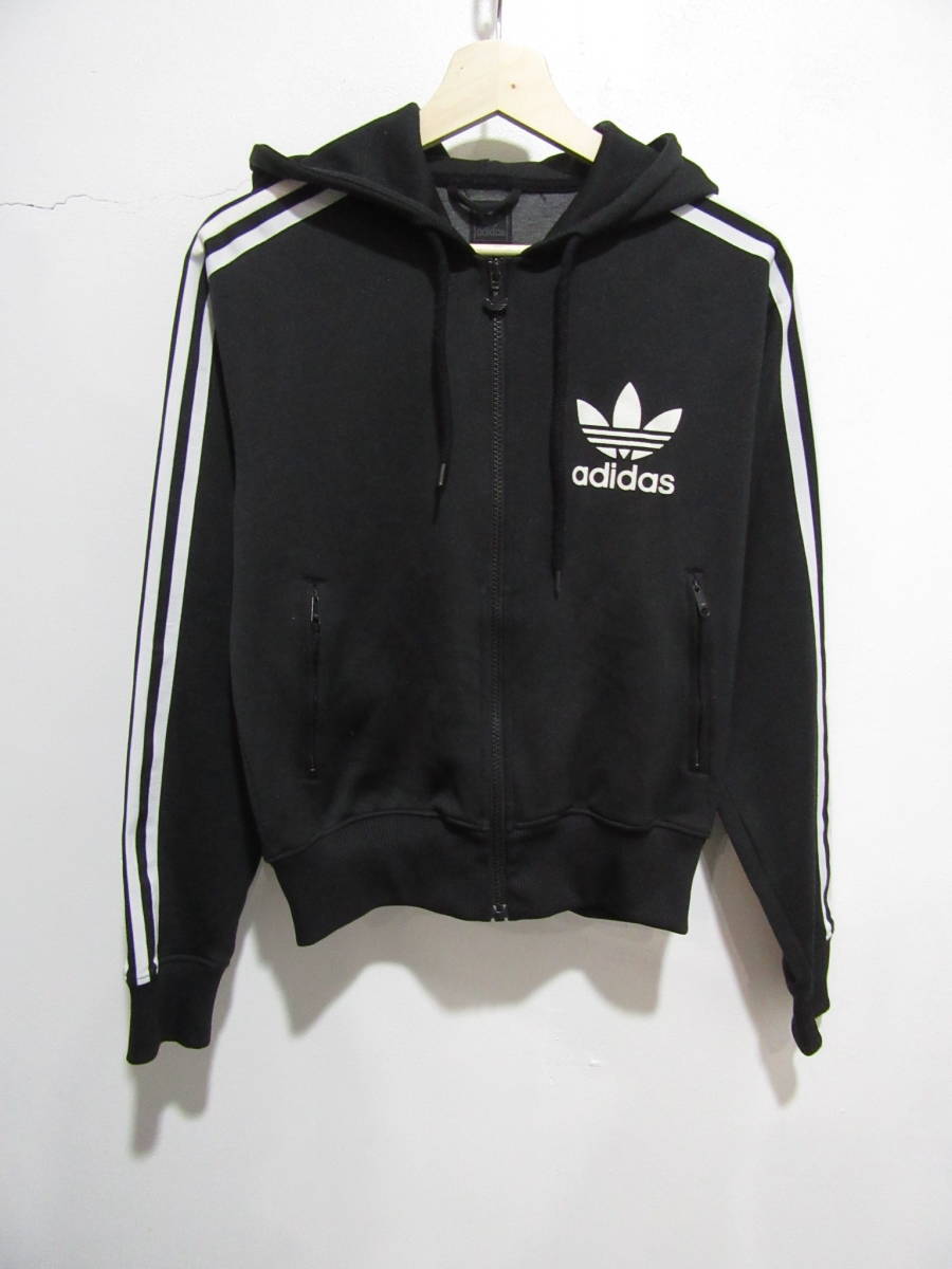 > ☆送料無料☆adidas☆アディダス☆フード付きジャージ☆パーカー☆3本ライン☆黒☆I20