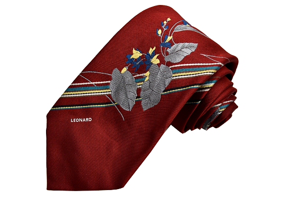 > N-1868★送料無料★LEONARD PARIS レオナール★イタリア製 レッド赤色 ボタニカル 織り生地 シルクネクタイ