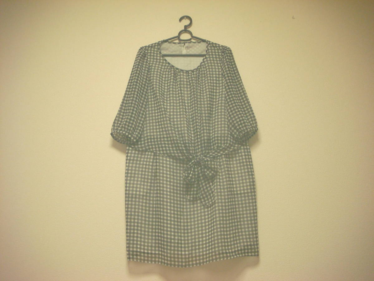 - 大きいサイズ ギンガムチェック 結べるおリボン ワンピース 白黒 L LL 3L 美品 6分袖
