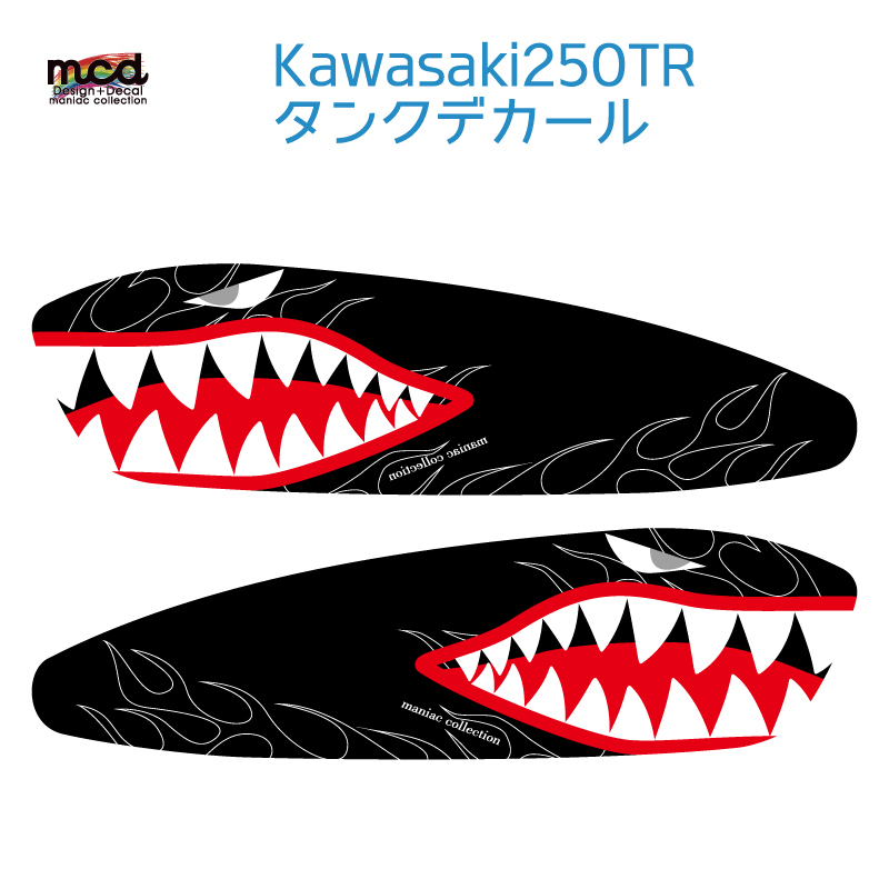 - Kawasaki 250TR タンクデカール デカール ステッカー ファイヤーシャーク 黒 カワサキ