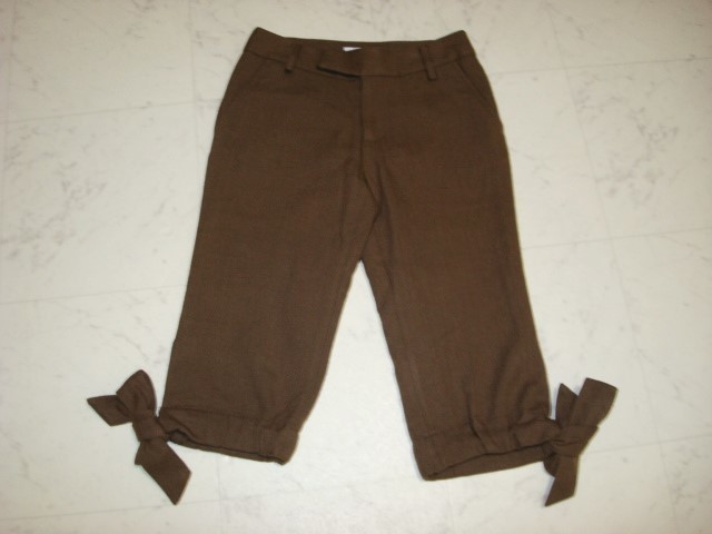 > ● 美品 新品同 afterall アフターオール アクリル ウール 毛 厚地 ショコラ ブラウン ベージュ サイドリボン ボトムス パンツ 2号 Mサイズ