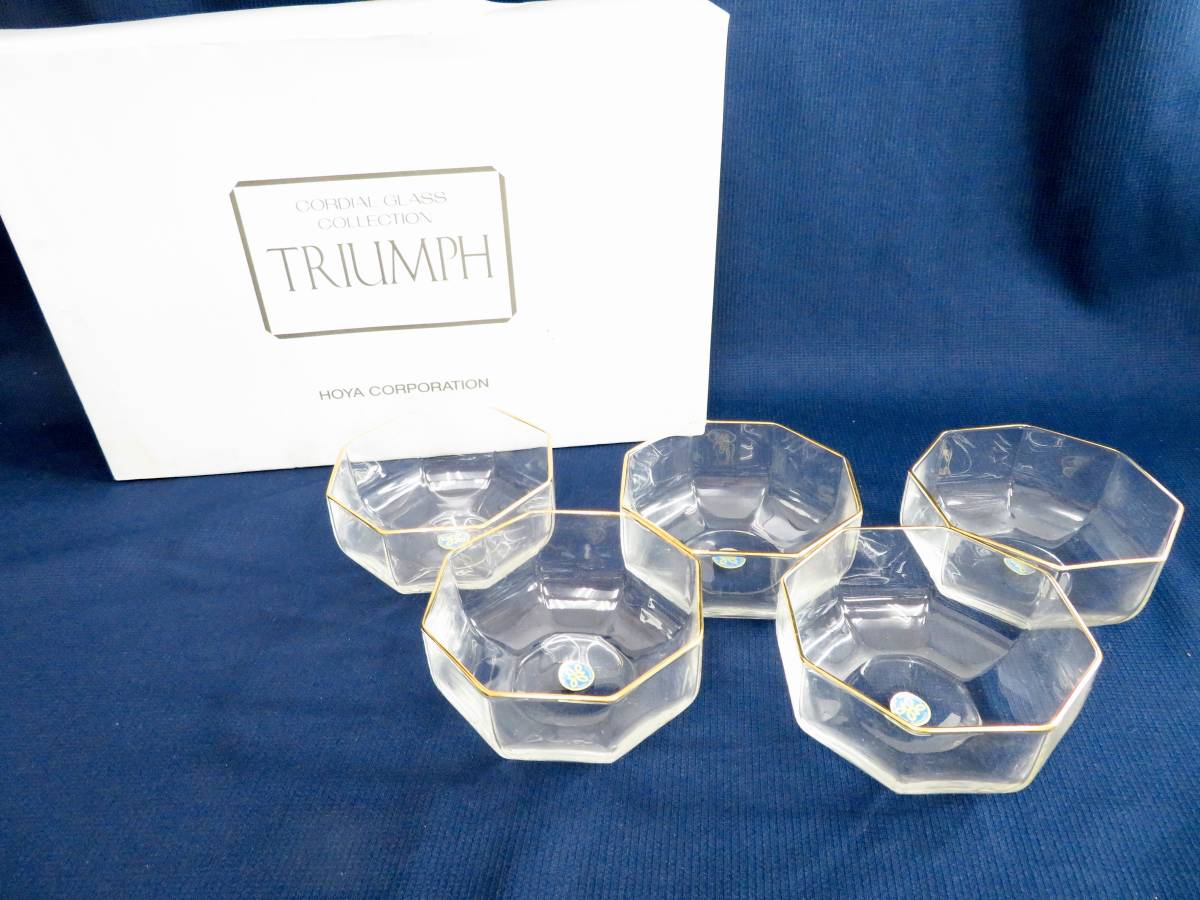> 並品・激レア!昭和レトロ▲HOYA ホヤ 金彩 デザート小鉢 デザート皿 金縁 八角形 5客セット 箱あり 管理2010 W-6