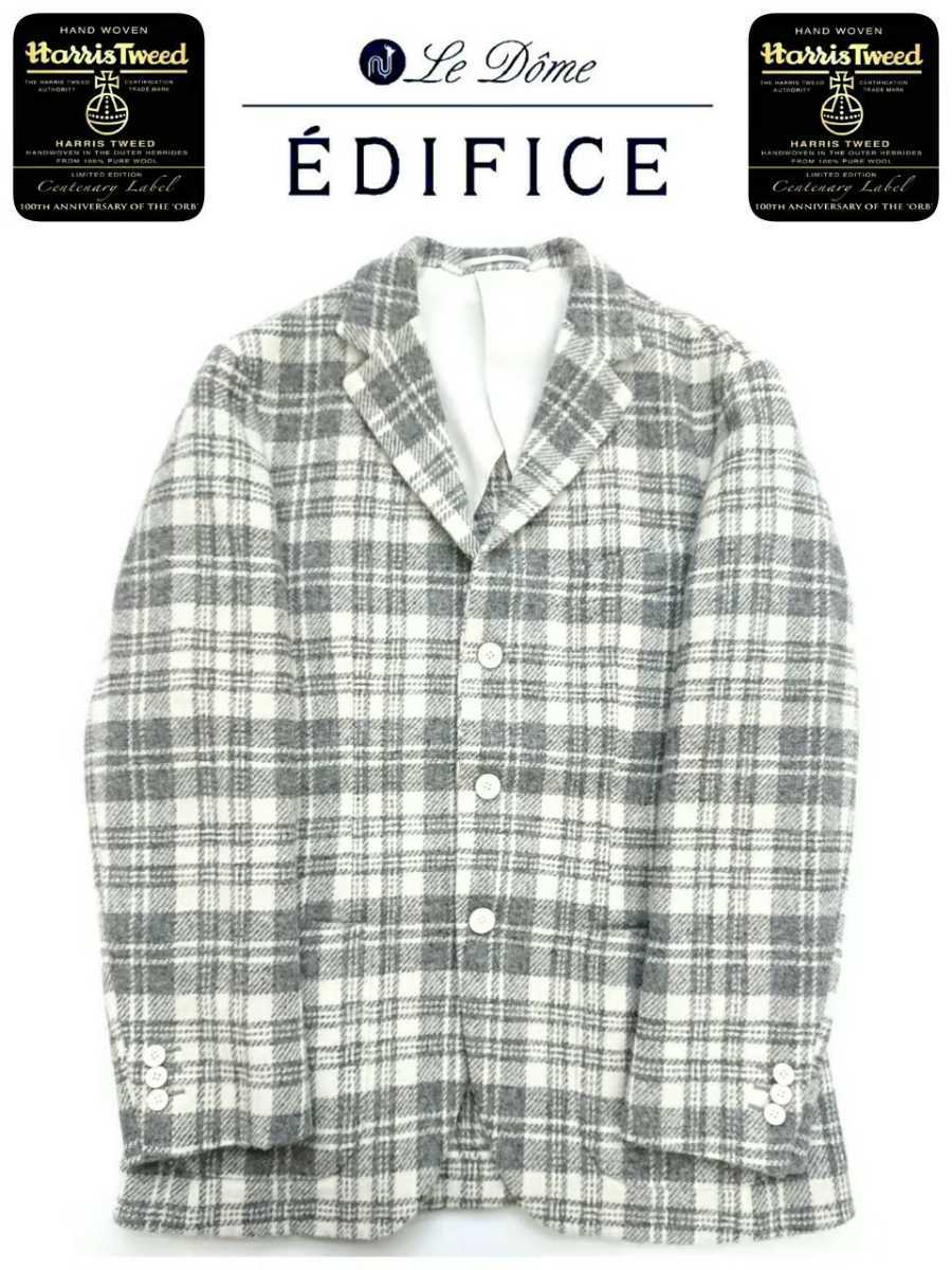 > 超名作 EDIFICE エディフィス×Harris Tweed ハリスツイード100周年限定 最高級オーバーチェックツイード3Bテーラードジャケット 46 極美品