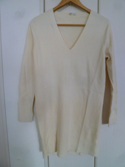 - UNIQLO U/ユニクロU○オフホワイト深いVネックロング丈ウールセーターニットワンピースM/チュニック長袖○117