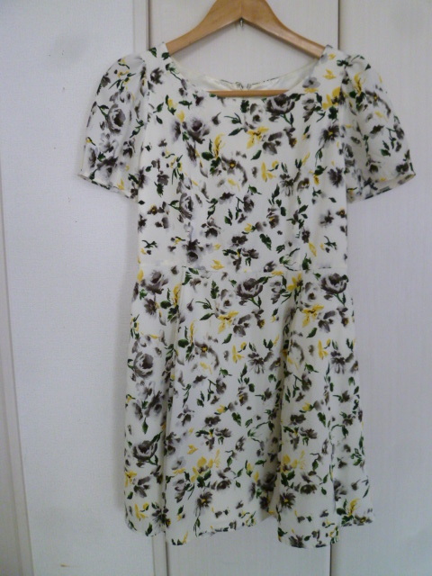 > CECILMcBEE/セシルマクビー○白小花柄上品フレアーワンピースM/ホワイト半袖膝丈○OP1111