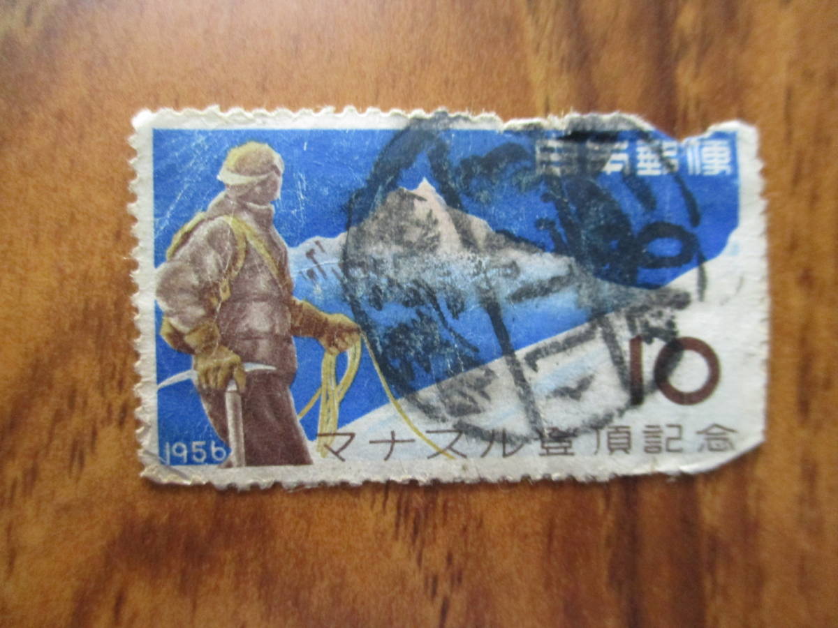 - 送料110円使用済み切手マナスル登頂記念マナスルと登山隊員10円