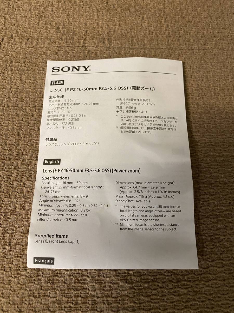 [宅配便/定形外]_SONY E PZ 16-50㎜ マニュアル 取説 取扱説明書