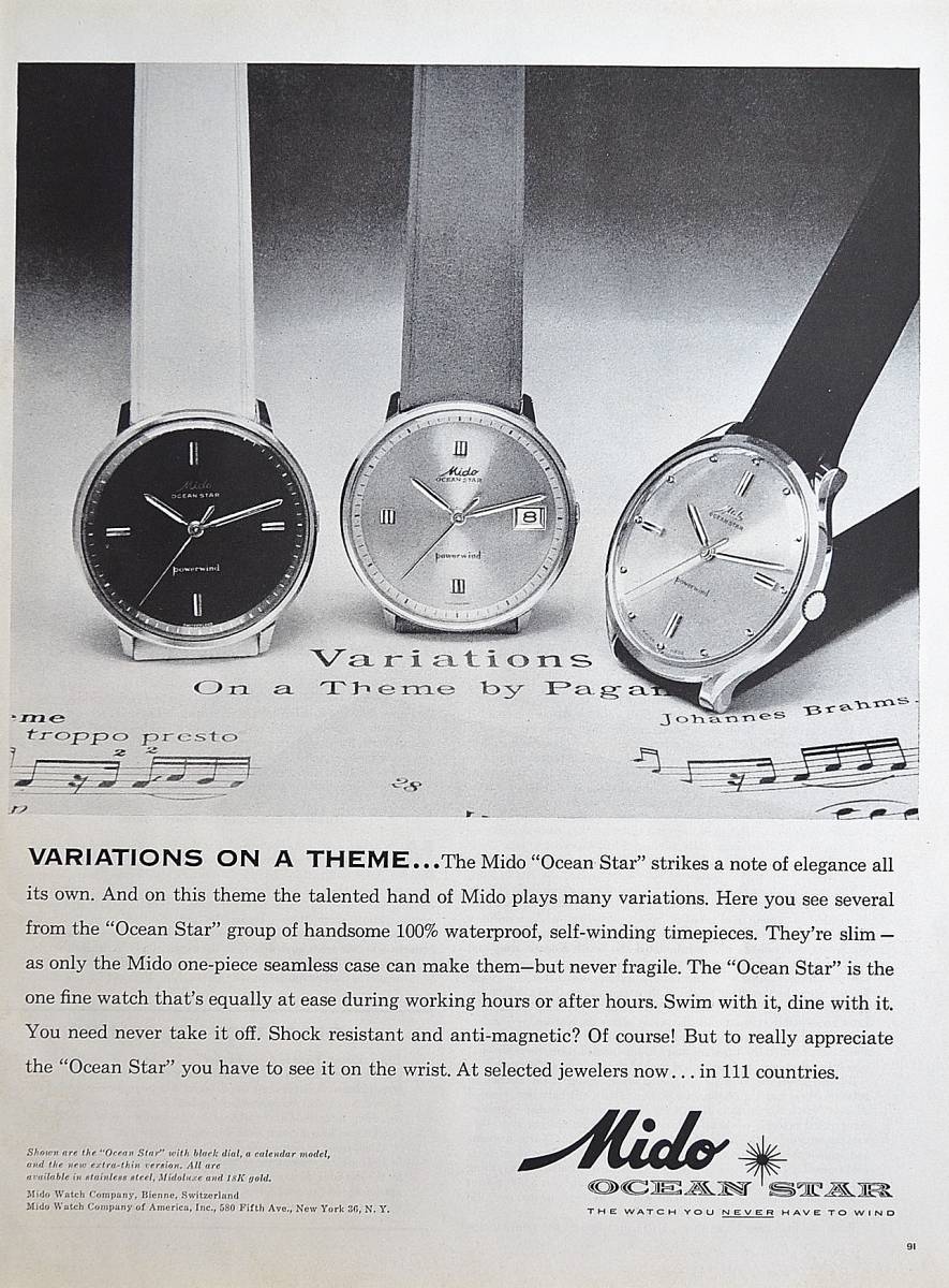 - 稀少・時計広告!1960年ミドー時計広告/Mido Ocean Star Watch/H
