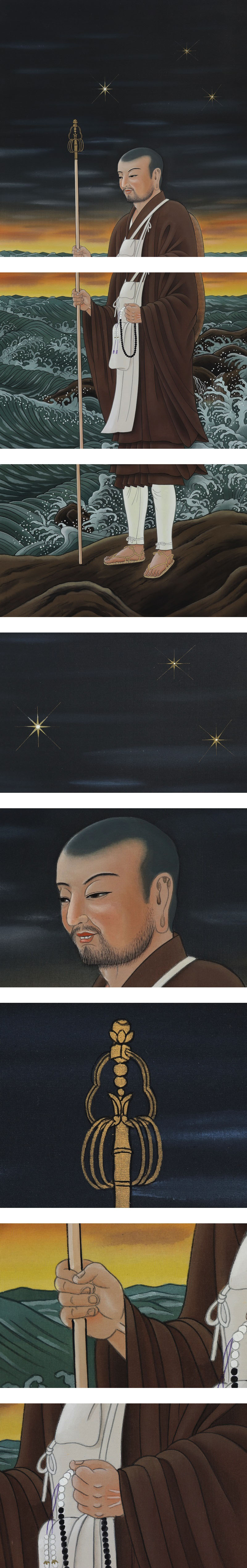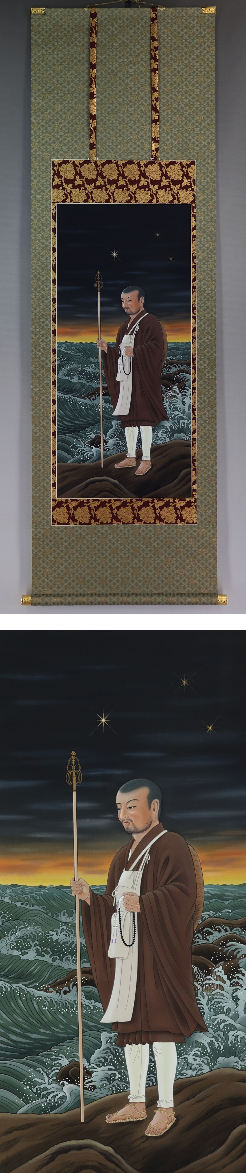 - 【肉筆】仏画【修行大師】◆絹本◆合箱◆改装済掛軸 w08167