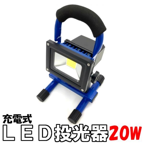 > LED投光器COB 20w ブルー 充電式 作業灯 防災停電懐中電灯 屋外 屋内 作業整備用 夜間作業 キャンプ 軽量ハイパワー防水防塵