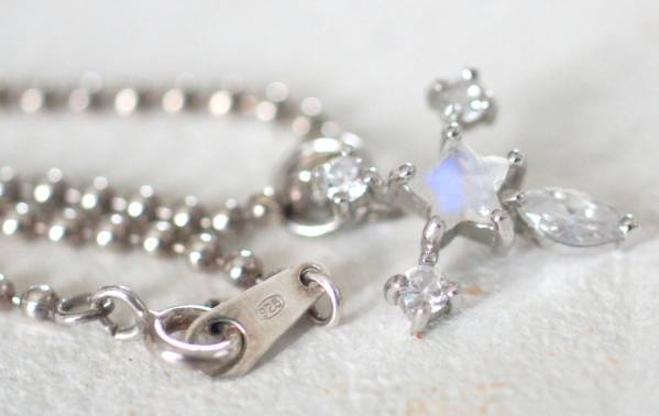 - シルバー925製 星のブルームーンストーン付き十字架のネックレス