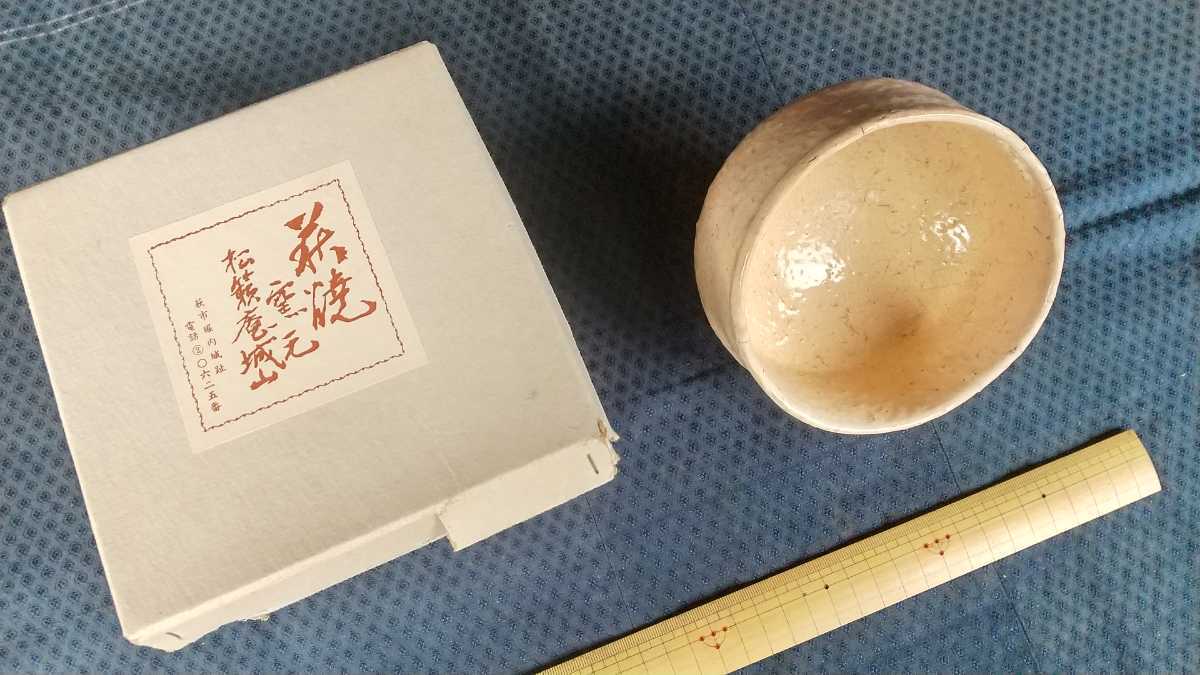 - 萩焼 松籟庵 城山窯 抹茶碗 紙箱 【直径12.5㌢高さ9㌢重さ380㌘】