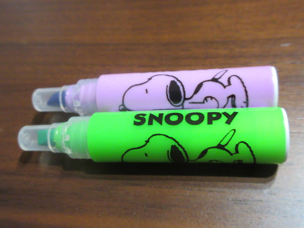 > ☆スヌーピー 蛍光 水性 ペン 2本セット パープル グリーン 紫 緑 かわいい 小型 日本製 レア 希少★新品未開封 未使用