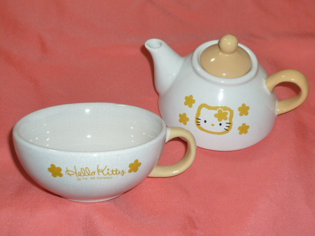 > 激レア!レトロ 1998年 サンリオ ハローキティ 陶器製 カップ&ポット (イエロー)