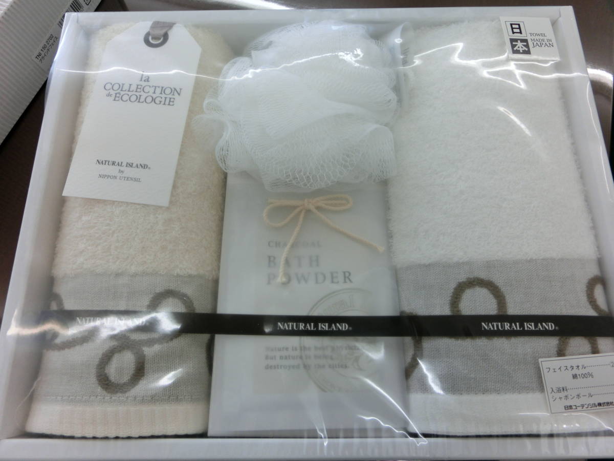 - ◎未使用・美品■箱入りタオルセット Natural Island■フェイスタオル・入浴剤・シャボンボール/ギフト