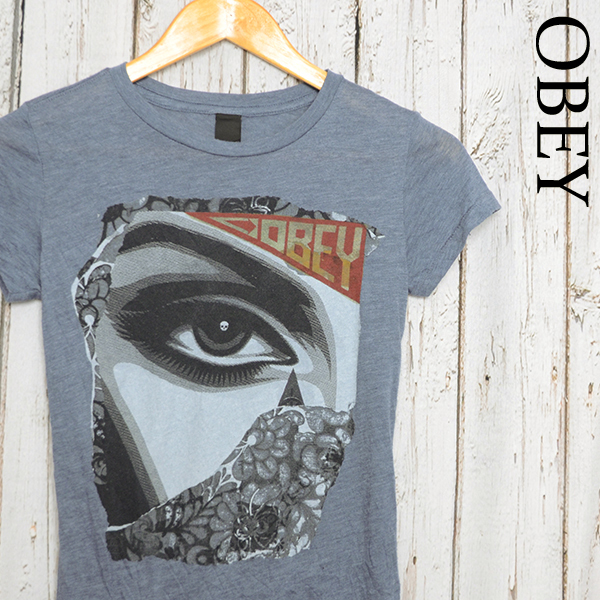 > ST2021 オベイ OBEY Tシャツ レディース S 肩34 プロパガンダ メール便可 xq