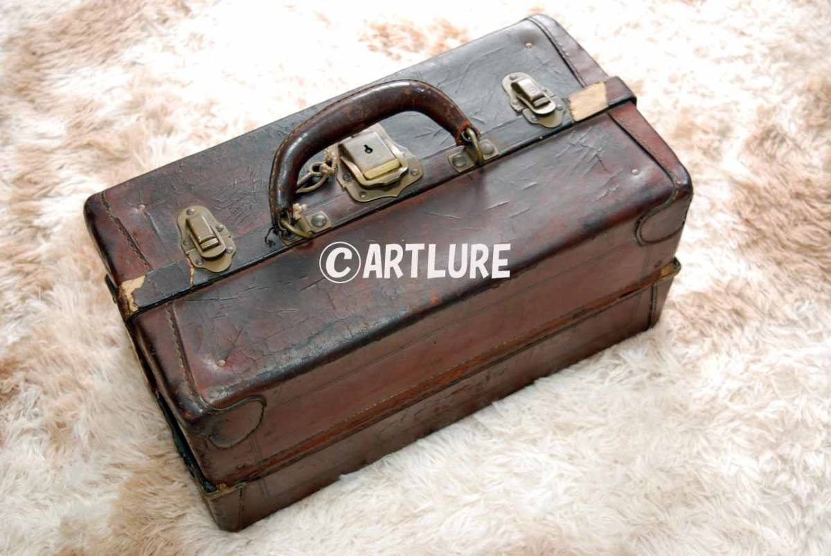 - 推定100年前のVINTAGE LEATHER TACKLE BOX KNICKERBACHER C 1920'S 蒐集家向け