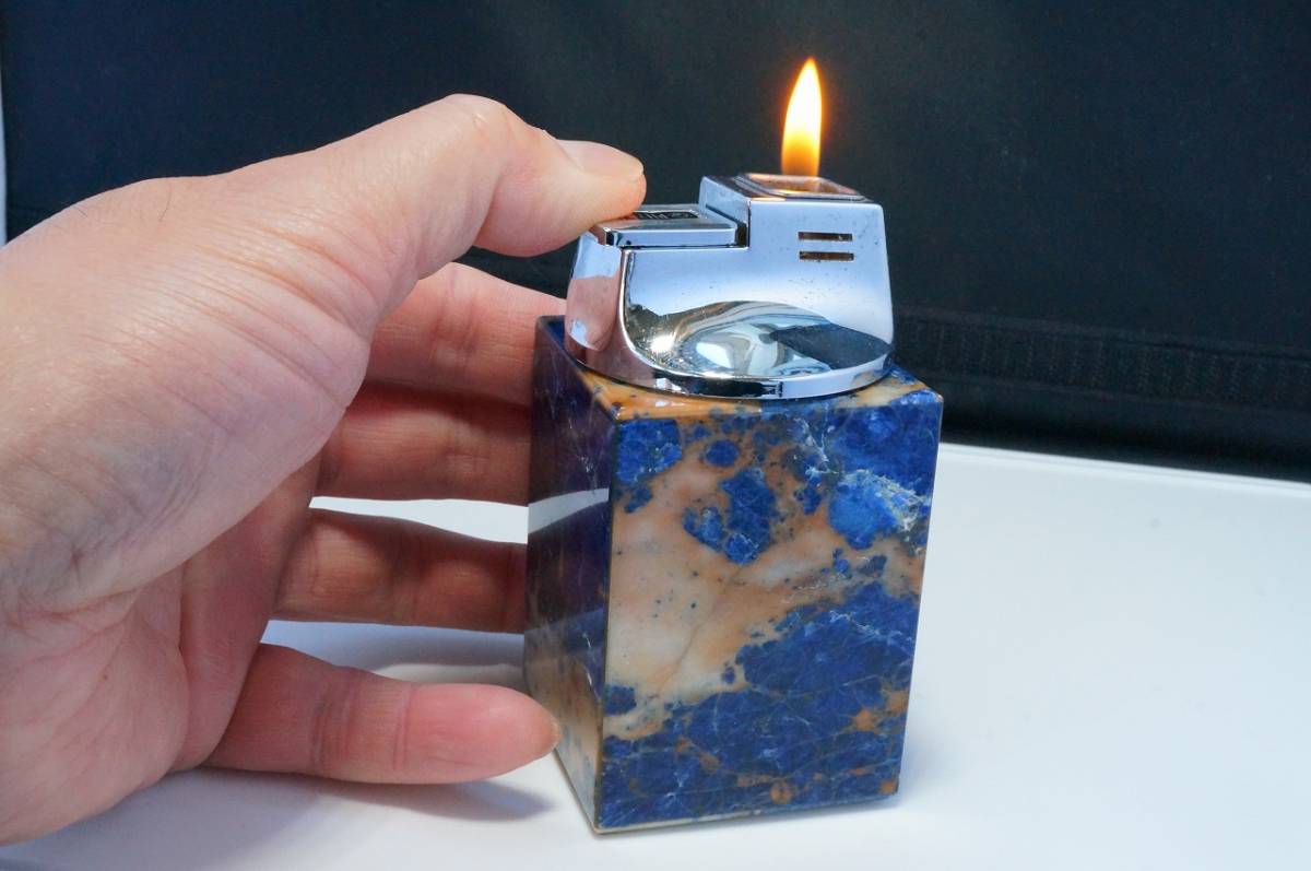 - 希少天然ソーダライト研磨彫刻品【ライター】甲府の貴石彫刻職人が製作292g