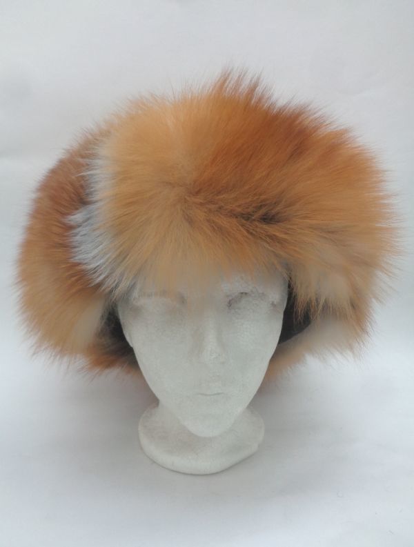 - カスタムメイド レッドフォックス毛皮ファー&レザー ロシアンスタイル・ハット 帽子