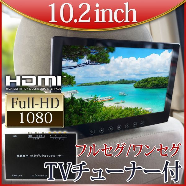 - 地デジチューナー + 10.2インチ オンダッシュモニター セット HDMI入力 USB充電 ワンセグ/フルセグ デジタル スピーカー バック連動