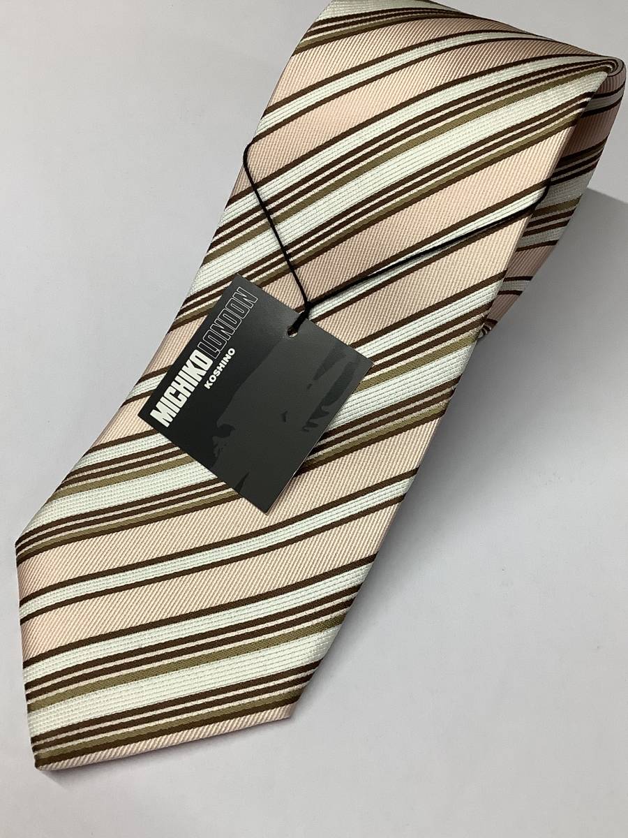 - 新品ミチコロンドン日本製ネクタイ 淡いピンクのストライプ激安処分 シルク100%お買い得サービス