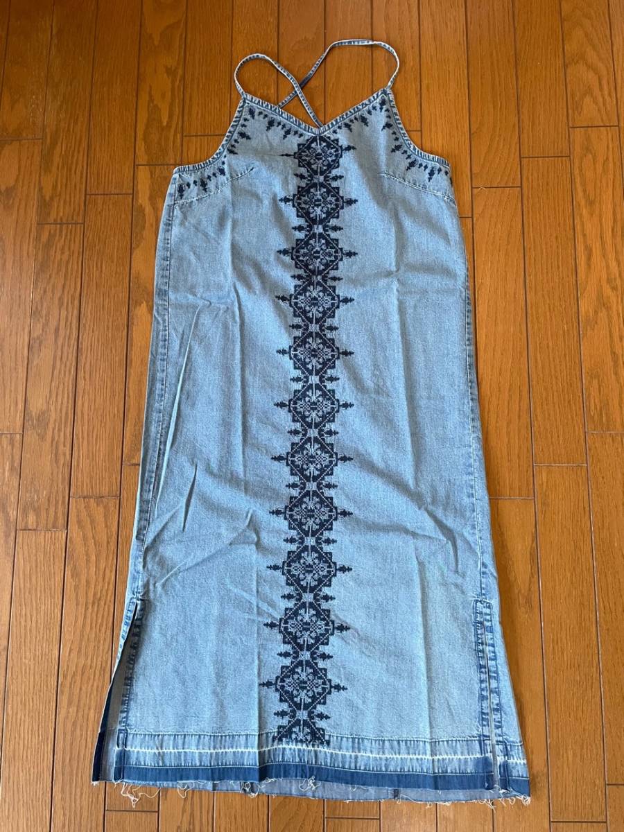 - ★テンセルデニム刺繍キャミソールワンピース★ライトブルー ネイビー刺繍