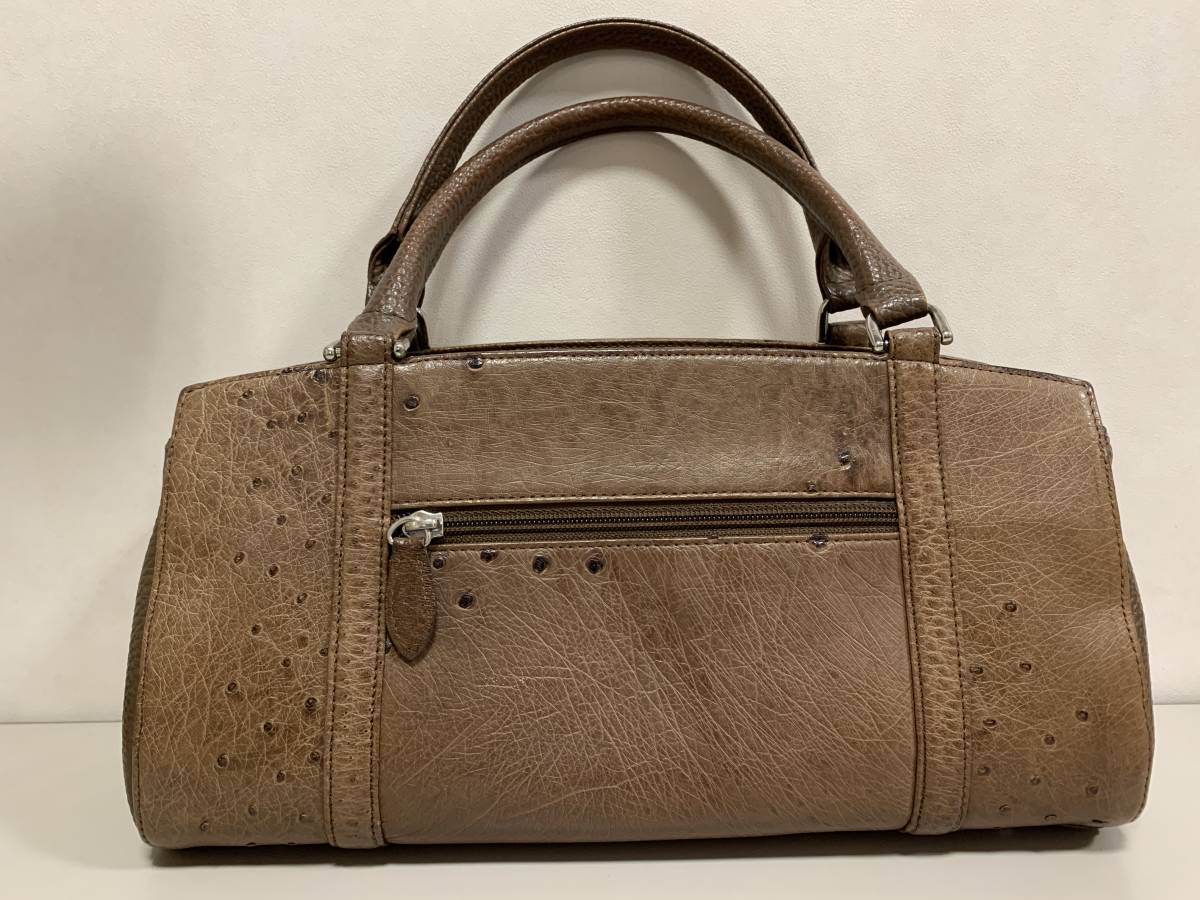 - 【質屋 尾張屋商店 東京】本物 オーストリッチ ハンドバッグ 茶色