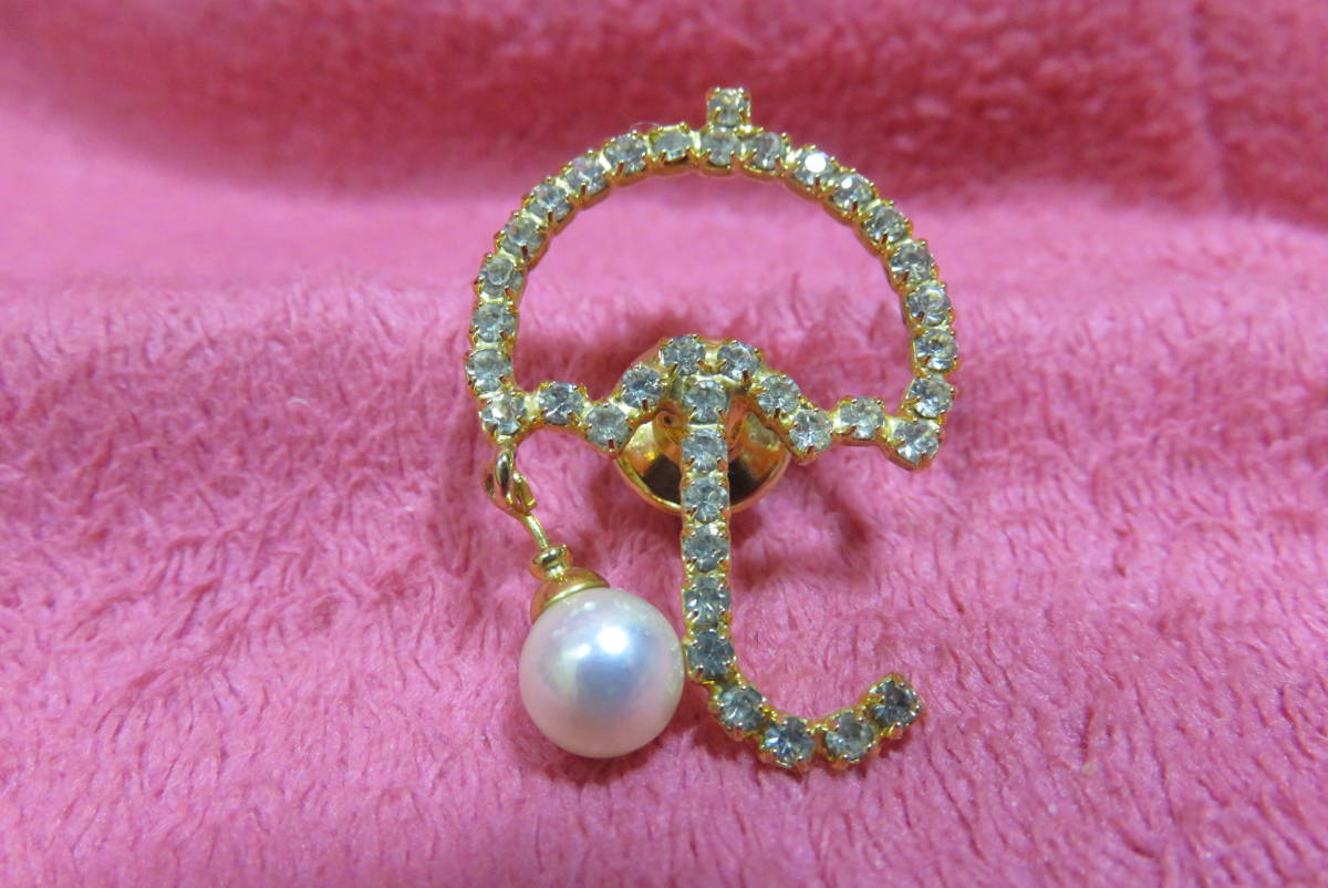 - S9907 ブローチ ピンズ パール調 傘 ラインストーン