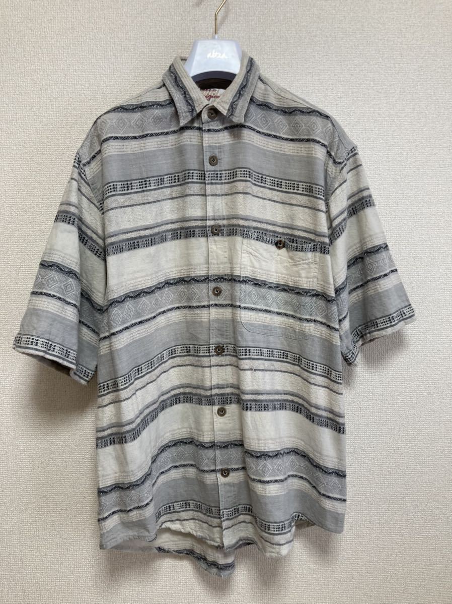 > ユーロ古着 Latin Orignal ジャカード織 半袖シャツ ボーダー半袖シャツ デザインシャツ M /ヨーロッパ古着