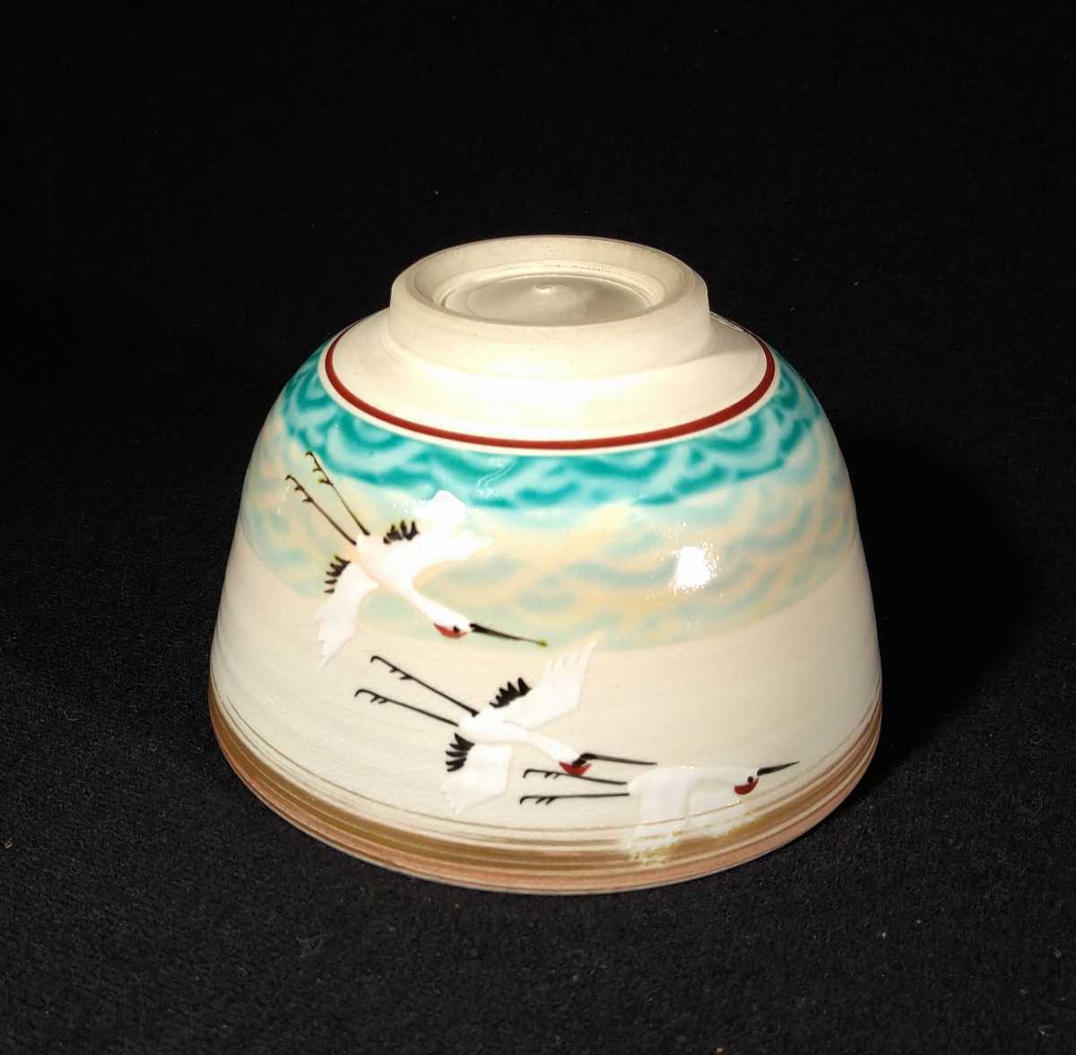 - 京焼 清水焼 香菊窯 「銘碗」 金彩 色絵 鶴絵 茶碗 紙箱 茶道具 a-47c1205