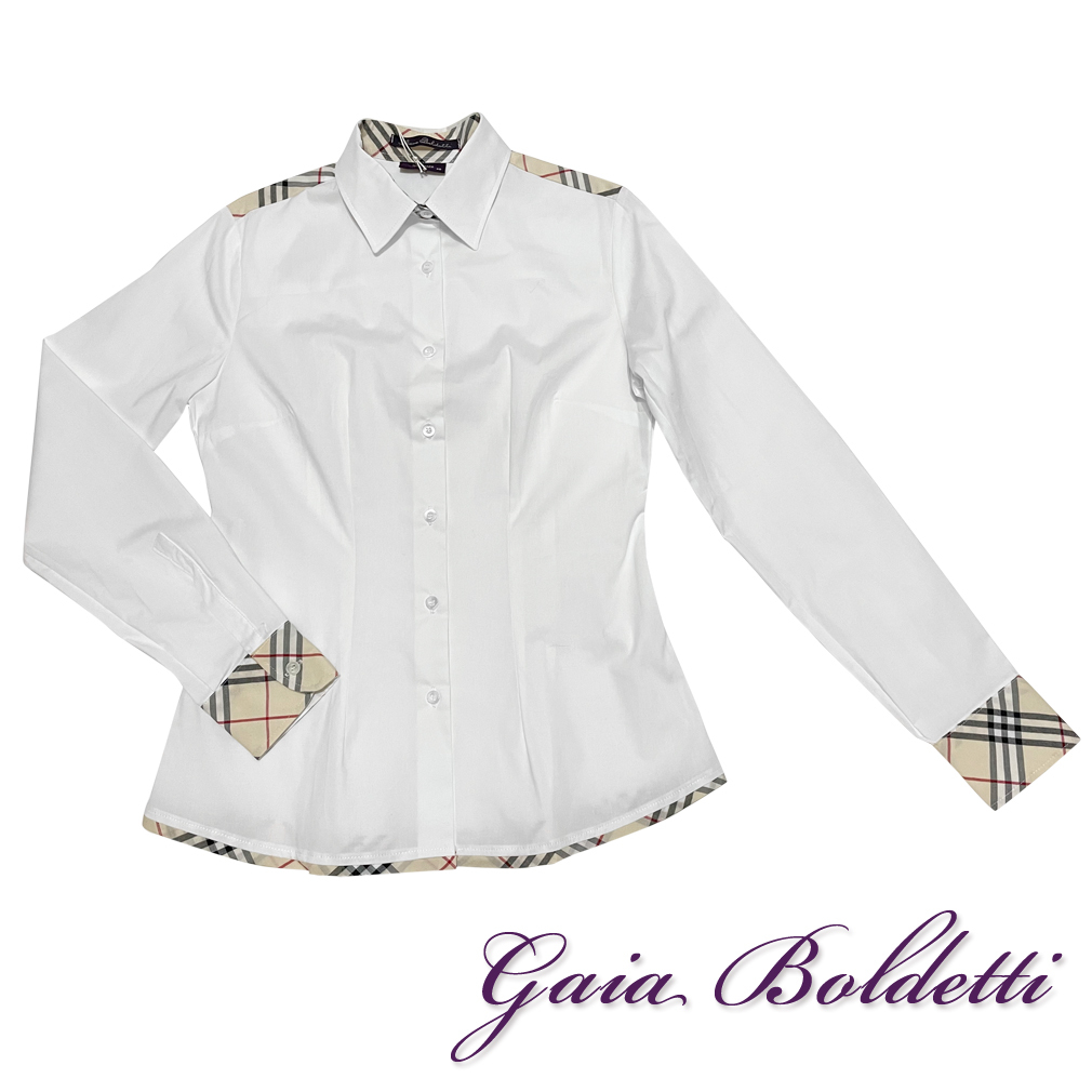 - 新品Gaia Boldettiイタリア製チェック柄シャツブラウス白#40#42★