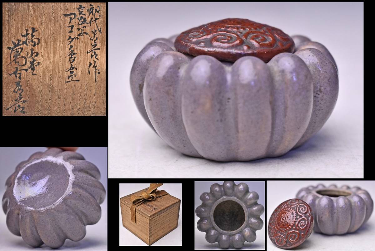 > 森有節 初代 ★ 交趾焼写 アコダ香合 ★ 識箱 ★ 小品の中でも優品 ★ 萬古焼 ★ 造形見事! ★ 古萬古 古万古焼 ★ 香道具