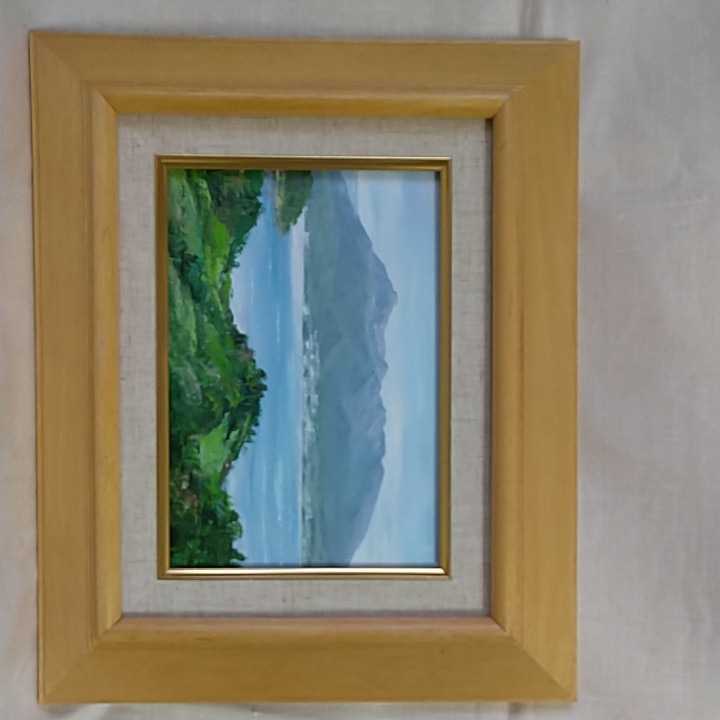 - No215 SM油絵 佐田 光 有珠山 前面ガラス入り 額装