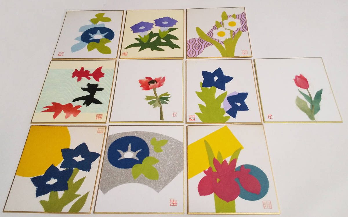 - 貼り絵ミニ色紙 10枚 金魚・草花 長期保管品