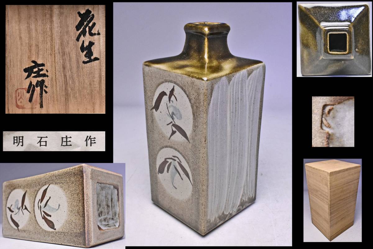 > 明石庄作 ★ 花生 ★ 共箱 ★ 栞 ★ 益子焼 ★ 人間国宝 濱田庄司に師事 ★ 花瓶 ★ 花入 ★ 花器 ★ 角瓶 ★