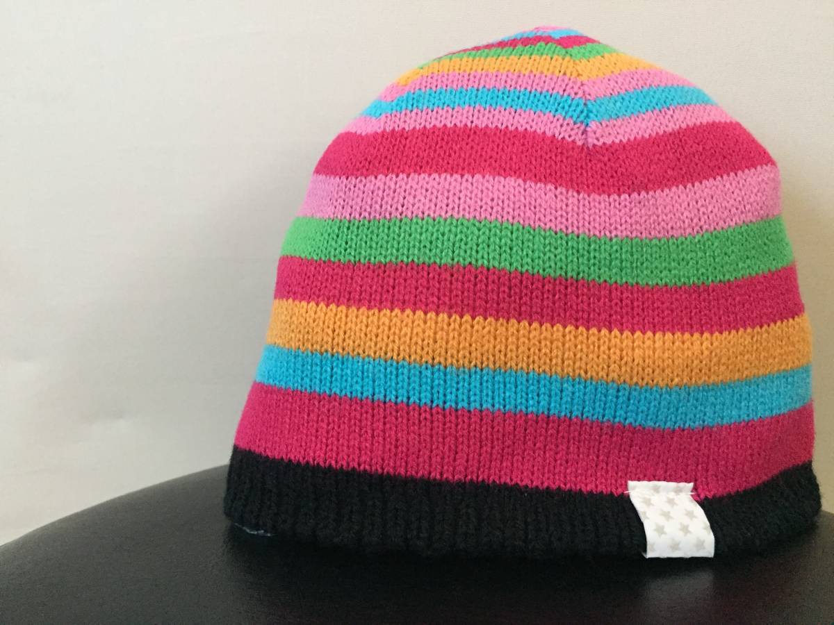 - ★マルチボーダーの可愛いリバーシブルビーニー★ニット帽★2歳程度サイズ★9989