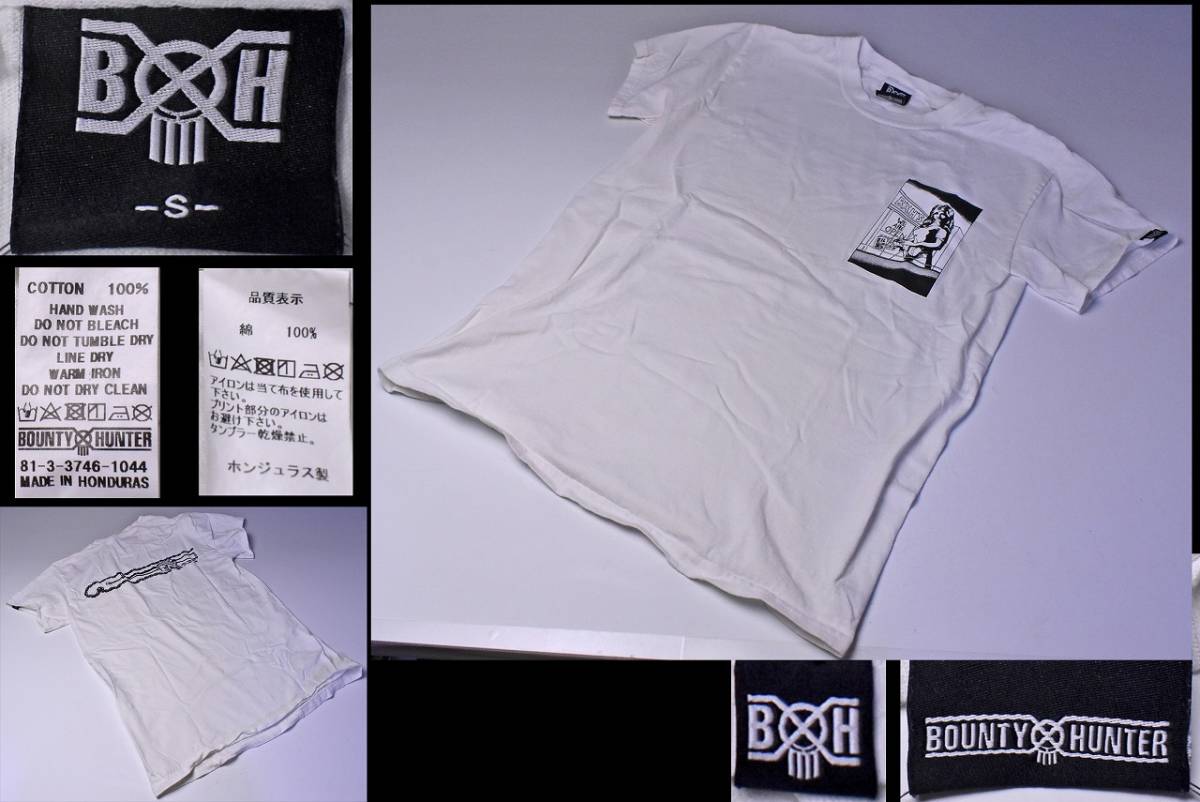 > バウンティハンター ★ BOUNTY HUNTER ★ BXH ★ Tシャツ ★ S ★ 前面 アメリカンコミック風女性 ★ 背面 ライフル ★ 白 ★ 綿 ★ 中古