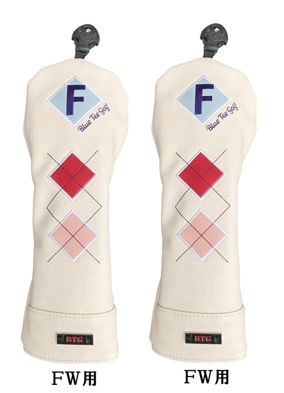 > ▲2本セット【FW-オフホワイト・ブルー】ブルーティーゴルフ【アーガイル- クラシックモデル】フェアウエイ用ヘッドカバー CHC-03送料無料