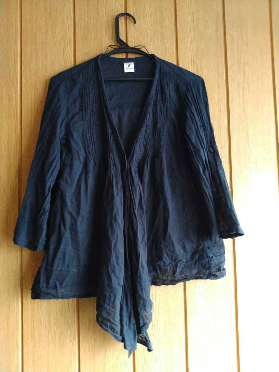 > 中古 Pyumosso バスト 79-87 身長 154-162 サイズ M 綿 100% 着丈 約61cm ブラック 袖 & 裾 2 ways 2通り ロールアップ 結ぶ トップス