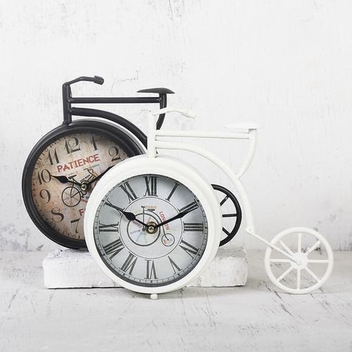 - ビンテージ風 鉄製 置時計 レトロ自転車 テーブルクロック ホワイト
