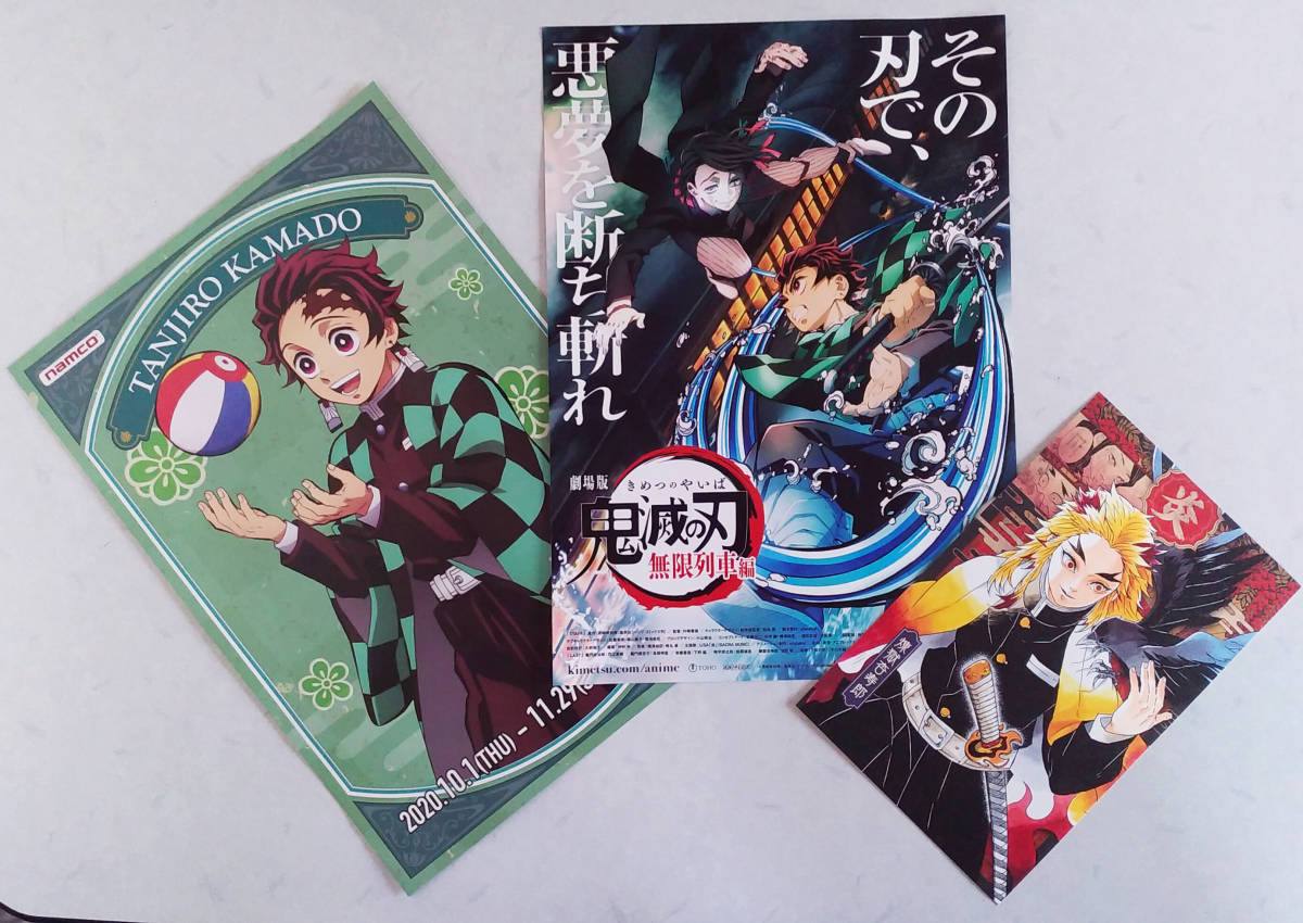 - 映画 鬼滅の刃 無限列車編 チラシ/フライヤー/ちらし/宣伝広告&ナムコ&煉獄杏寿郎 ポストカード 3枚セット 炭治郎 善逸 伊之助 禰豆子