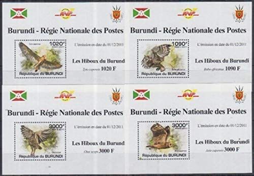- ブルンジ切手『ふくろう』鳥 4シートセット 2011 市場価格2800円 小難