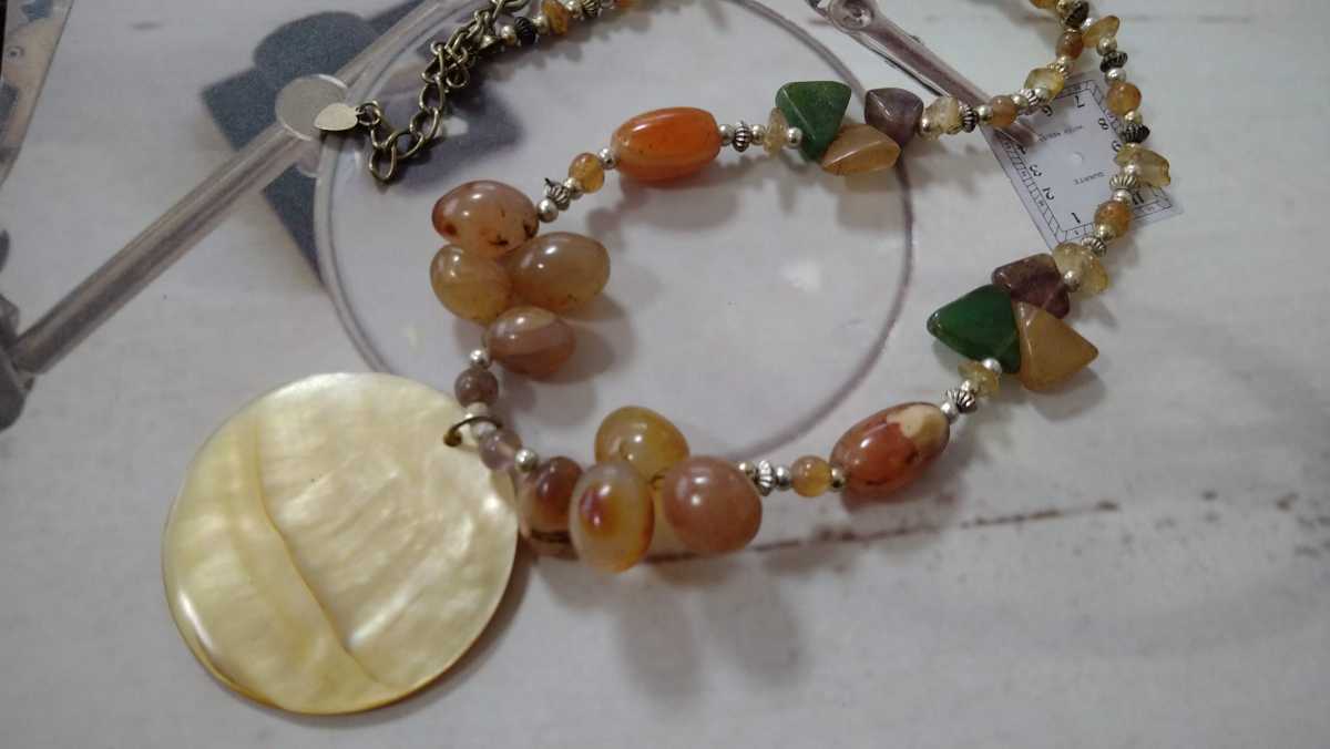 - □シェル×サークルプレート・ニュアンスカラービーズ ネックレス□