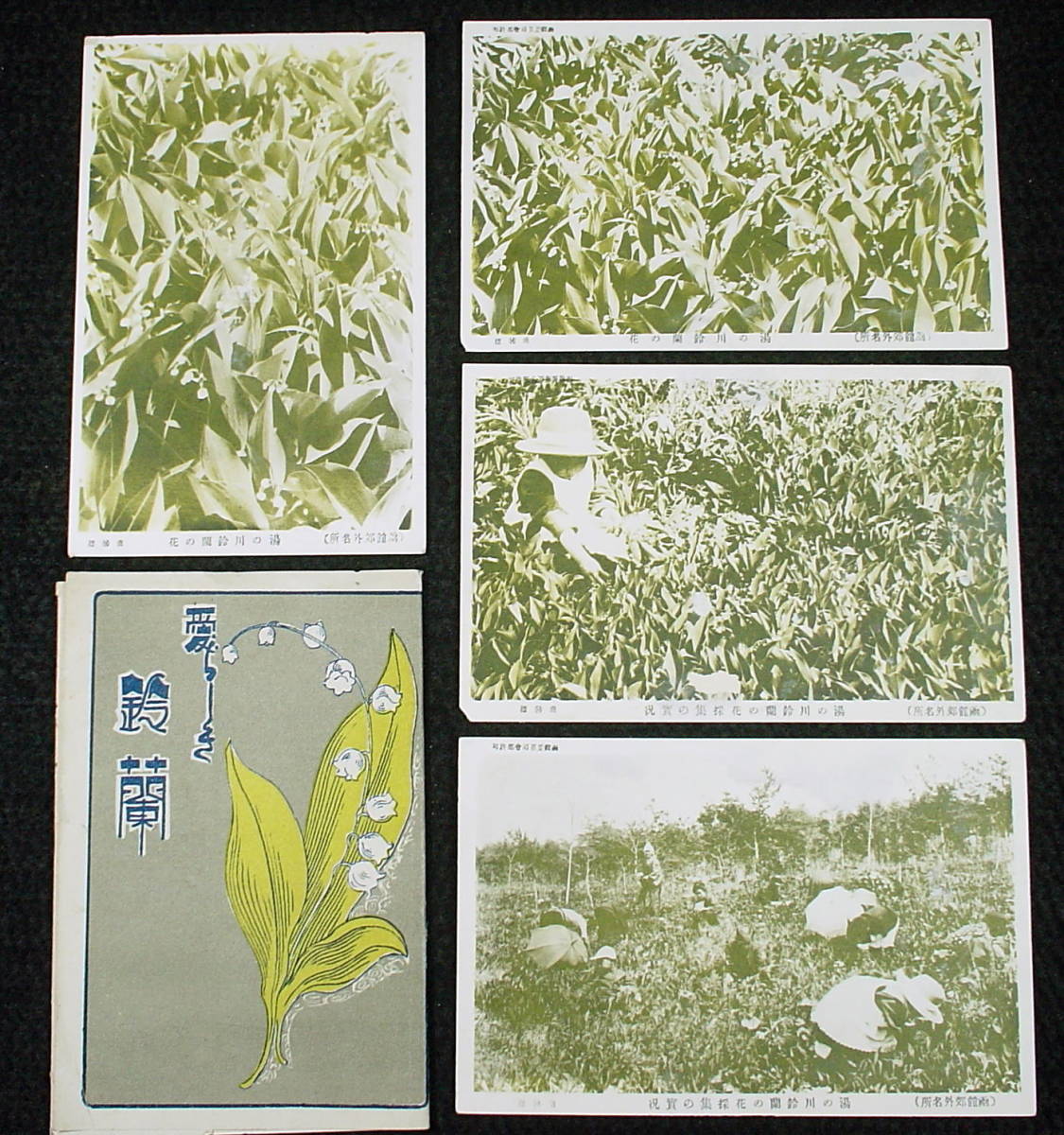- 明治、大正、昭和前期頃の絵葉書 愛らしき 鈴蘭 四枚