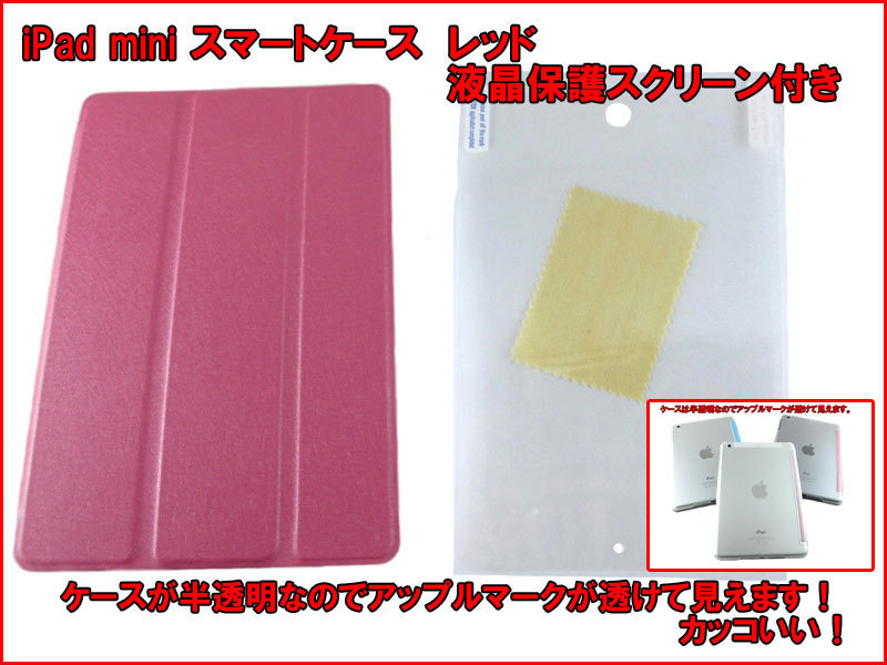 - 【iPad mini カラフル スマートケース】 赤 レッド iPad mini 1 2 ( Retina ) 3 用 スマートカバー 半透明 スケルトン クリア ケース n2it