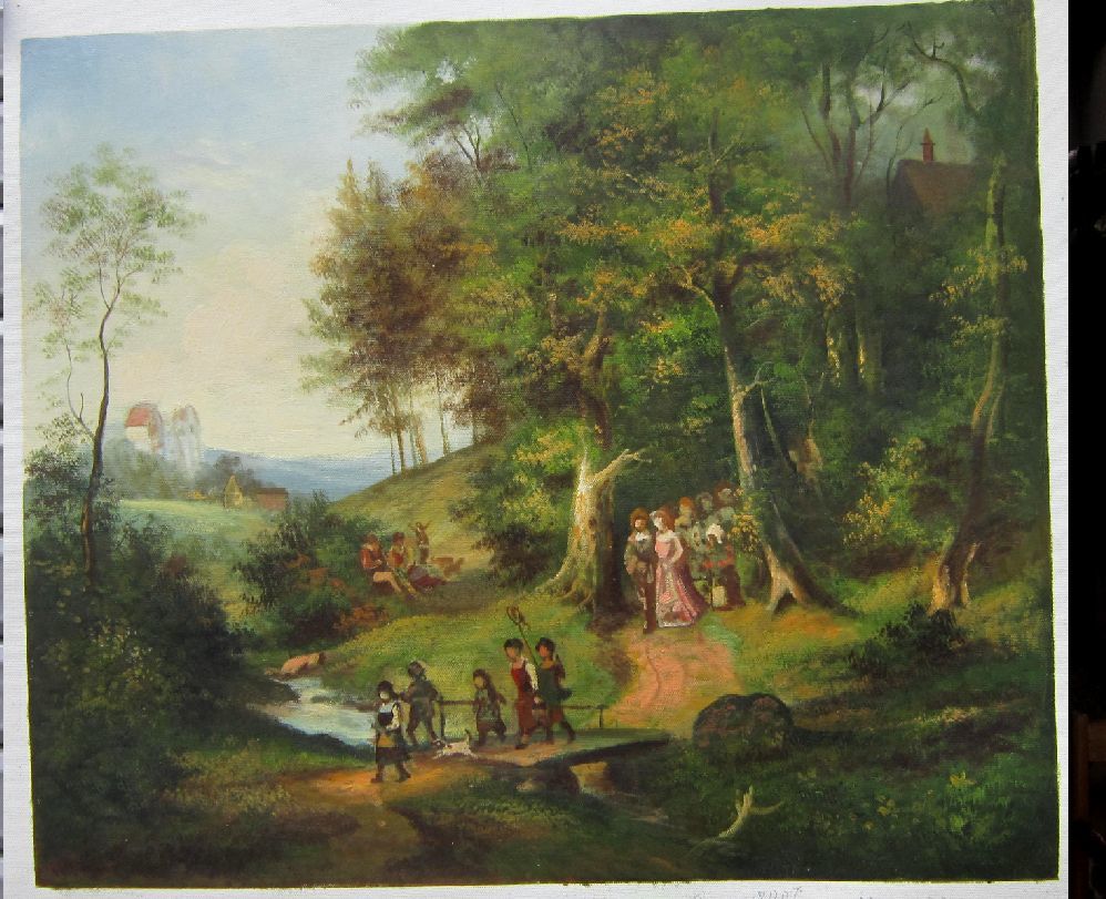 > 模写 8号 手描き油絵、世界の名画シリーズ リヒター作、「春の嫁入り行列」。製作1847年頃、45 x 38