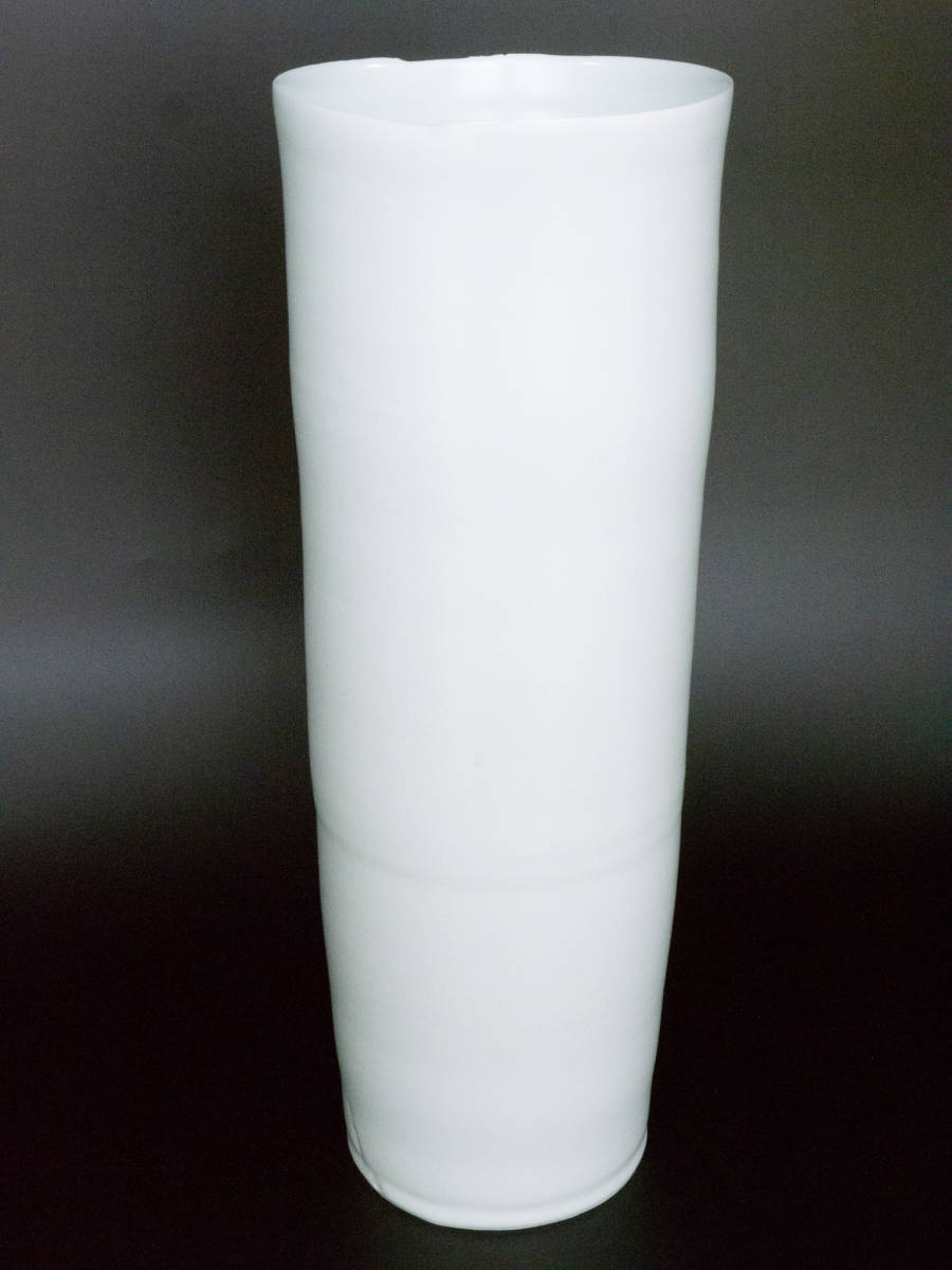 - 【値下げ交渉有り】 希少 唯一無二の白磁の巨匠 黒田泰蔵 造 師:人間国宝 島岡達三 白磁 特大 筒型 花入 花瓶 ベース