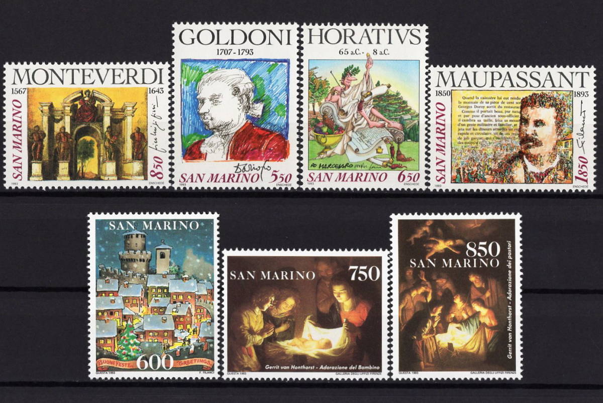 - ★1993年 サンマリノ - 「著名人」4種完 + 「クリスマス」3種完 未使用(MNH)(SC#1286-1292)★VF-488